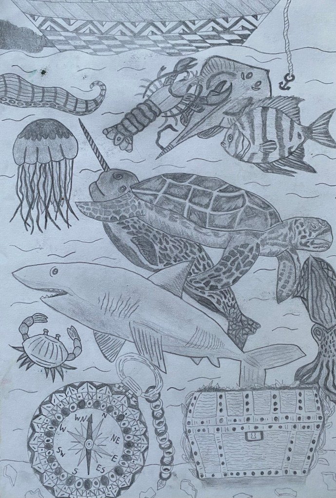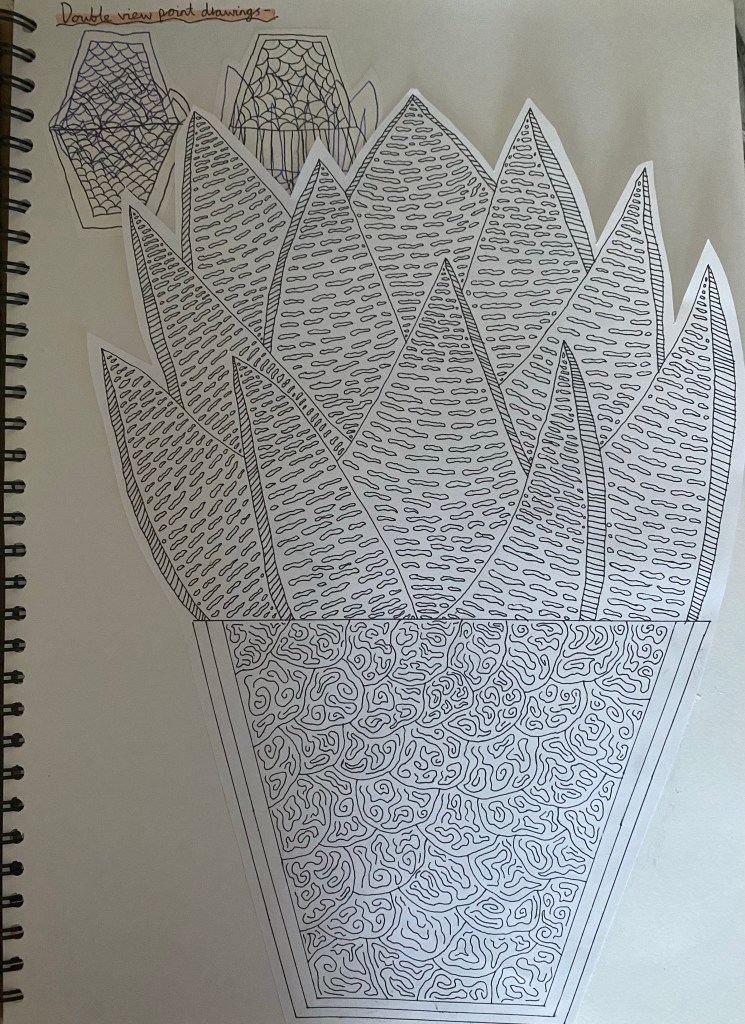 A series of textured drawings exploring the structure and patterns found in nature and sea life